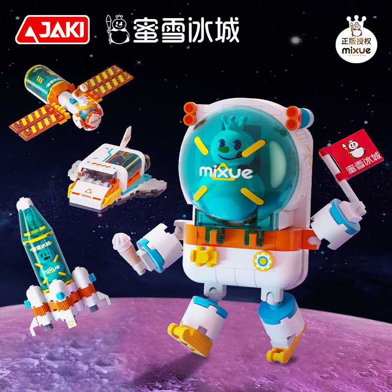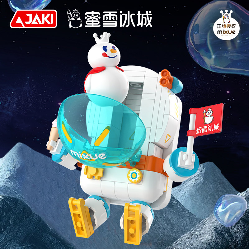 左手拿蜜雪旗幟,右手拿草莓冰淇淋,雪王宇航員成功出艙啦