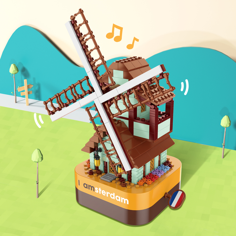 將積木與音樂(lè)盒完美結(jié)合,好玩又時(shí)尚。純機(jī)械動(dòng)力設(shè)計(jì)更環(huán)保,音樂(lè)盒發(fā)條轉(zhuǎn)動(dòng)帶動(dòng)風(fēng)車(chē)旋轉(zhuǎn),益智拼搭,時(shí)尚美觀,還能充當(dāng)家居精品擺件。