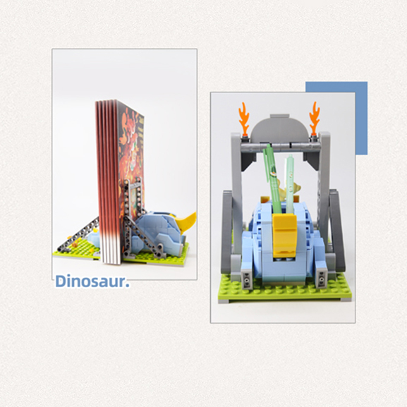 三角龍身體正中央,可當(dāng)筆筒, 可根據(jù)實(shí)際需求,拉開三角龍放置書本